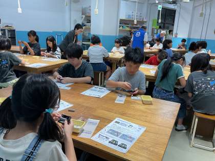 LEDを光らせたりと体験学習を楽しそうに取り組んでいました。