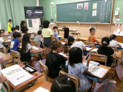 「みの回りのものを読もう」の学習です。身の周りのポスターや看板の工夫について考えました。