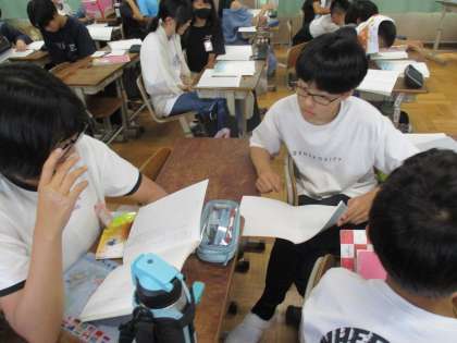 宮沢賢治さんが書かれた「やまなし」のお話を読んで感想を書きました。「くらむぼんって何?」「5月と12月に分かれているのはなんで?」「このお話は何を伝えたいの?」「オノマトペが多い。」など、疑問に思ったことを交流しました。