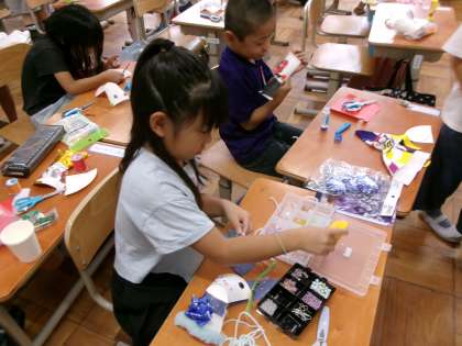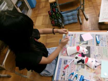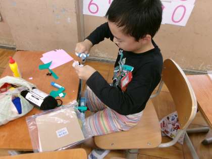 糊やハサミを上手に使っていますね。真剣に作っている姿,素敵です。