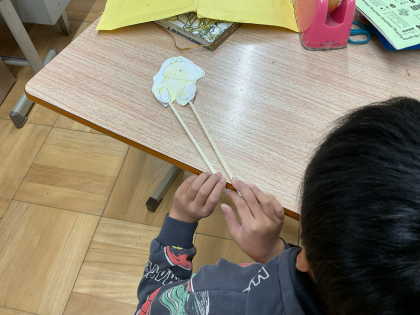 あおぞら学級には、絵を描いたり、工作をすることが大好きな人がいっぱいです。今日も腕が動くことができる人形ができあがり、感心しました!