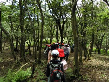 後半は,尾根伝いの登山道を歩きました。見晴らしのいい場所もあり,遠くに琵琶湖が見える場面もありました。途中でお弁当でエネルギー補給,そしてとうとう念願のゴール!全員けがもなく,6時間に及ぶ登山が無事終了しました。お疲れ様でした!!