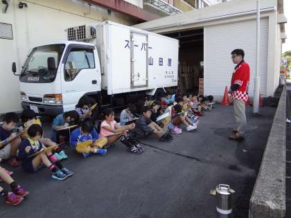 社会の学習では「地域で働く人々」について課題をもってすすめています。買い物調べで3年生の保護者が利用することが多い近くのスーパーマーケットに見学することにしました。そこで「スーパー山田屋」へ見学に行きました。たくさんのお客さんに喜んでもらうための工夫はどのようなものがあるか,前もって質問を考えて行きました。子ども達の質問に丁寧に答えていただきました。また,店内だけでなく,調理されているところの見学や大きな冷蔵庫・冷凍庫などに入って中の様子も見せていただきました。初めて知ったことも多く,たくさん学習ができた社会見学でした。