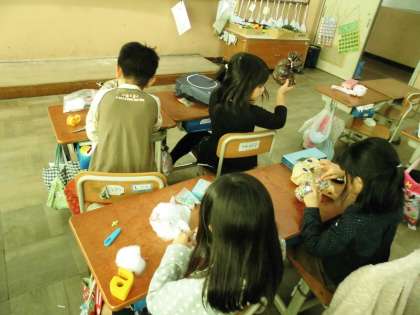 図工の立体作品として,ふくろや紙袋をふくらませて,「ふくろちゃん」という友だちを作りました。どこを耳にしようかな,どこを体にしようかな,と輪ゴムでくくるところをいろいろと考えていました。どんな表情にしようかな,名前は何にしようかなと発想を練りながら,それぞれ違った素敵な「ふくろちゃん」ができました。