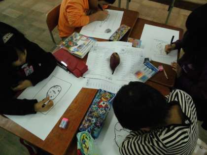 生活科で育てたさつまいもを先日収穫しました。じっくり観察をして,一つ一つ形や色,大きさが違うことに気がついたり,いろいろな方向から見たりと,「観察名人」になって描いていました。絵の具を使って色をぬりましたが、パレットでの混色や水の量の調節など、少しずつ上達しています。次は,みんなのお楽しみ,実際にさいまいもを調理していただきます。