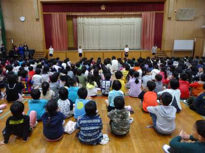 1時間目に,「南タイム」を行いました。今日も,児童会の子どもたちが司会進行を務めました。3年生の発表を全校のみんなで聞きました。