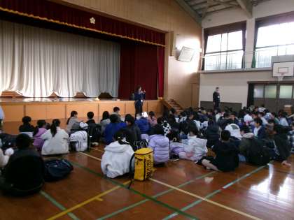 子供たちが楽しみにしていた花背山の家宿泊学習です。いつもより少し早い登校でしたが子どもたちは元気いっぱい!出発式の様子です。
