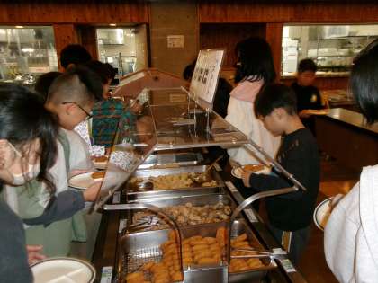 お楽しみの夕ご飯です。何を選ぼうか迷ってしまいますね。バランスを考えて選んでいました。おいしく食べてね。