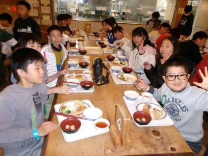 どのテーブルからも元気な声が聞こえてきます。「おいしい!」「え〜もうそんなに食べたの?」みんなで食べるとおいしいのでしょうね。たくさん食べていました。