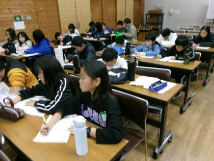 真剣に一日をふりかえり、熱心に書き込む姿!いいね!