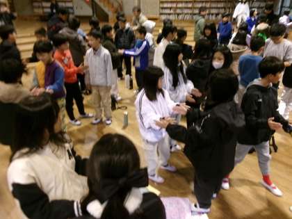朝の集いでミニレクレーション。朝から元気いっぱいです。