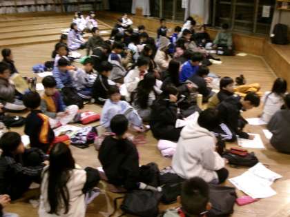 今日はオリエンテーションホールで一日の振り返りをしました。昨日よりも5分前行動を意識することができたのがよかったですね。