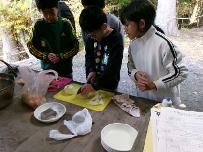 道具がそろったら,さぁ,野外炊事の始まりです。