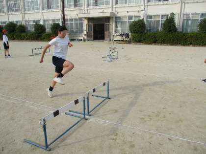 ハードル走に取り組みました。タイムを更新するために、一人一人が飛び方を工夫して取り組んでいました。
