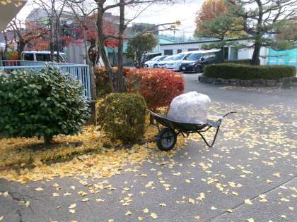 多く樹木に囲まれて緑がいっぱいの桃山南小学校ですが,この時期はあちこち落ち葉でいっぱいになってしまいます。毎日落ち葉掃きしてくださっている管理用務員さん,ありがとうございます!