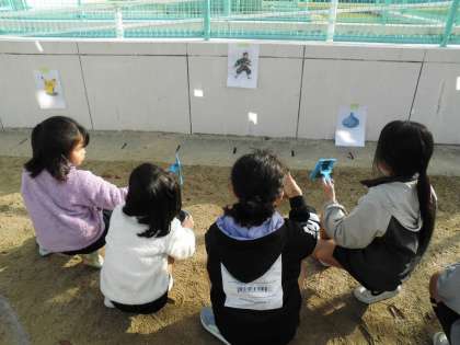 光にはどんな性質があるのか、鏡で日光をはね返らせて調べています。
