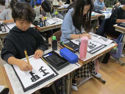 書き初めをしました。集中して取り組んでいました。