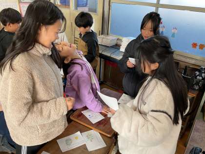 自分たちで作ったかるたを夢中になってかるた取りしていました。