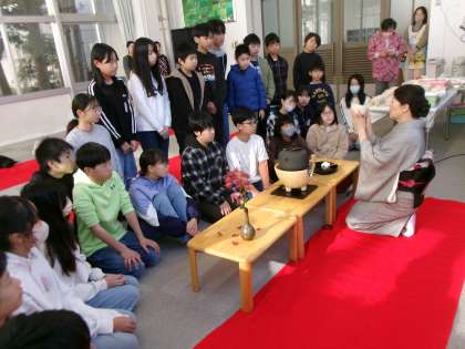 6年生が以前から楽しみにしていた茶道体験教室が行われました。講師の先生から茶道で大切にしている相手を思う心についてお話をしていただきました。そのあと,実際にデモンストレーションとしてお茶をたてていただきました。みんな興味津々で熱心に手の動きや作法などを見ていました。