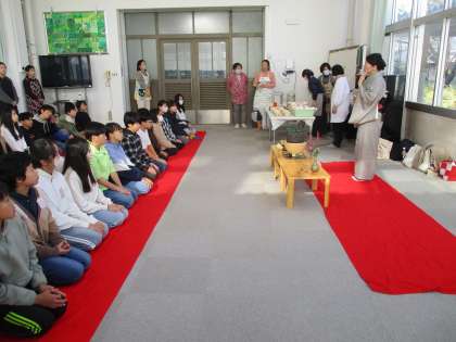 今日は茶道体験がありました。道徳の学習で「時と場をわきまえた礼儀の形にこめられた思いについて考えよう。」というめあてをもって学習しました。そして、その後、お茶体験につなげていきました。子どもたちは、先生に茶道の心構えについて教えていただき、お茶の飲み方やお菓子のいただき方など教えていただいたことを実践することができました。先生、地域の皆様、そして保護者の皆様ご協力本当にありがとうございました。子どもたちにとってとても貴重な体験になったと思います。