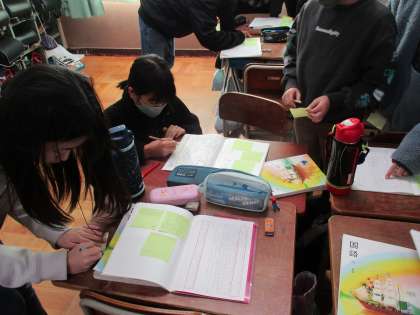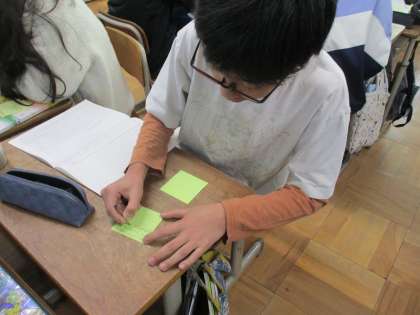 学習の最後に書いた感想をグループで読み合いました。友だちに考えに共感できたことや、疑問に思ったこと,新しい発見があったことなどを付箋に書いて伝えることができました。