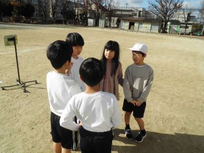 順番や走る距離をチームで相談して、力を合わせて10周を走り切ります。