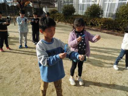 虫めがねで黒い紙に光を集めると、けむりが出てきました。