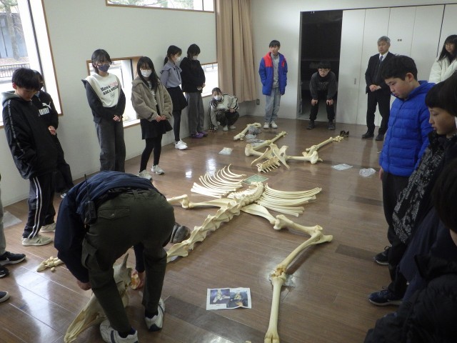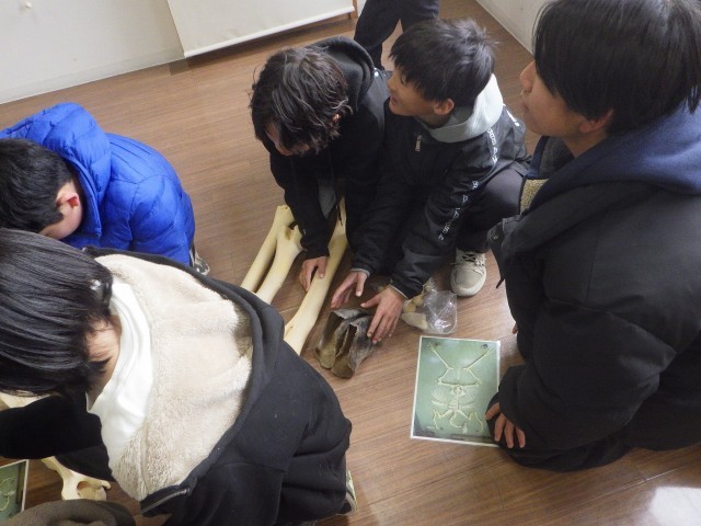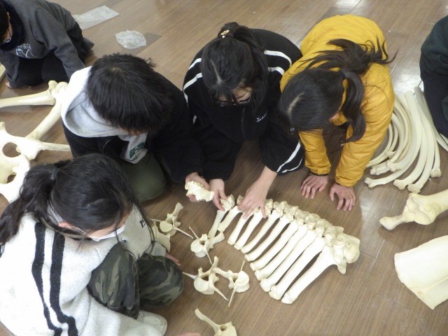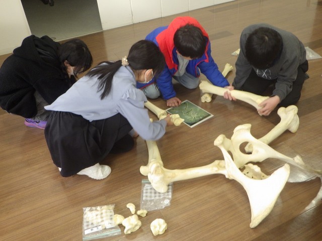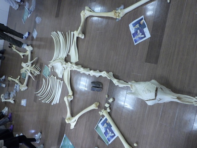 動物園の後半では、キリンの骨格標本の組み立てをしました。