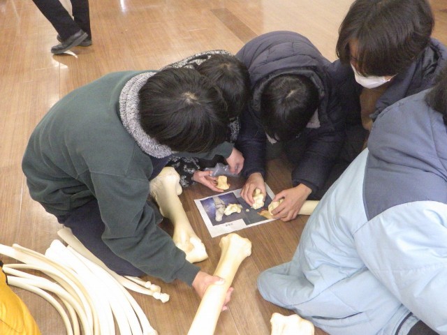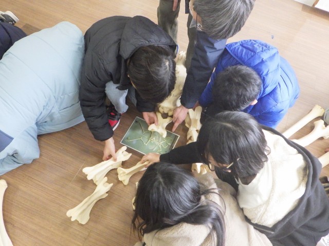 同じような形の骨が多い中、骨の長さや形、組み合わせた時のフィット感でつないでいき、見事に完成できました。