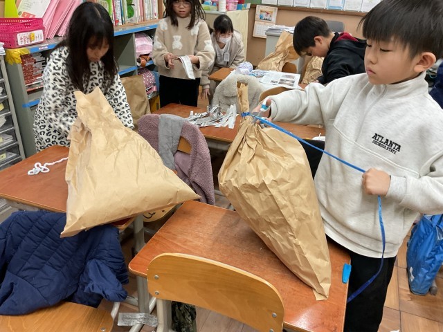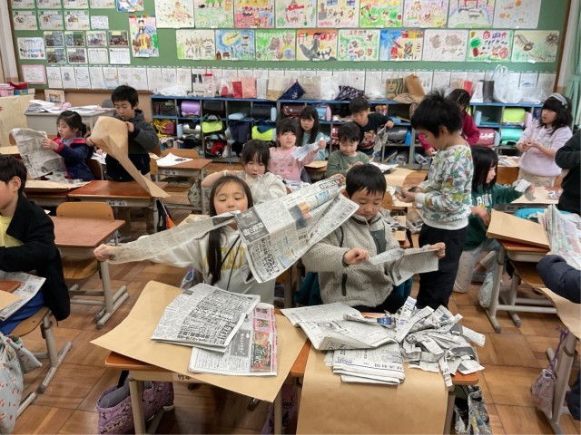 図画工作「くしゃくしゃぎゅっ」の学習がはじまりました。