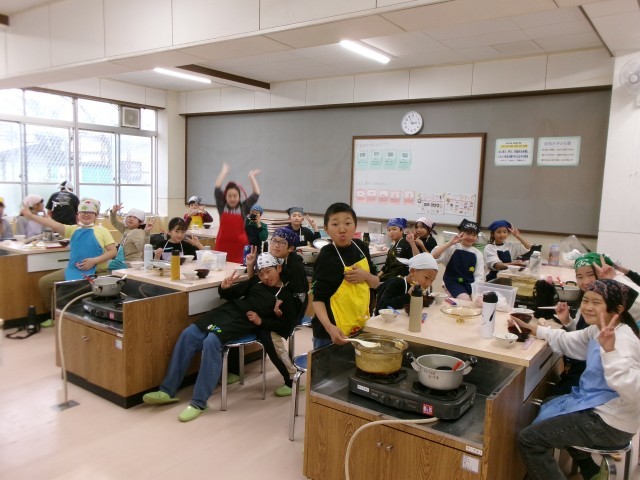 調理実習をしました。メニューはご飯とみそ汁です。いりこでだしを取り、大根と油揚げの味噌汁を作りました。ご飯ふっくら、みそ汁もちょうど良い味です。みんなでおいしくいただきました。