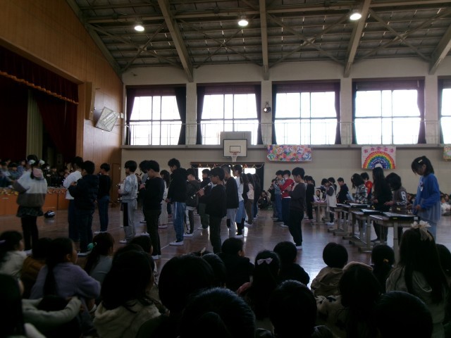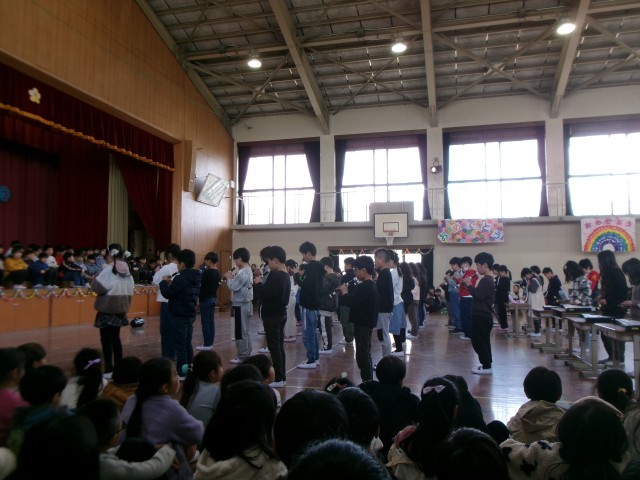 3年生はリコーダーを中心に合奏と歌で卒業をお祝いしました。優しい音が体育館に響いていました。