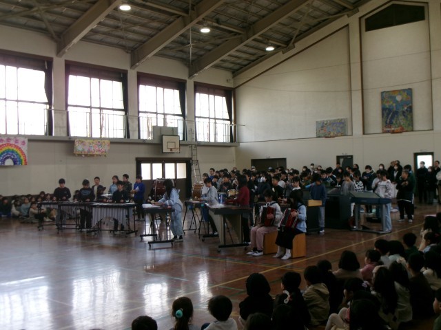 5年生は「アフリカンシンフォニー」を演奏しました。迫力ある演奏は中学へ進む6年生を励ましているようでした。