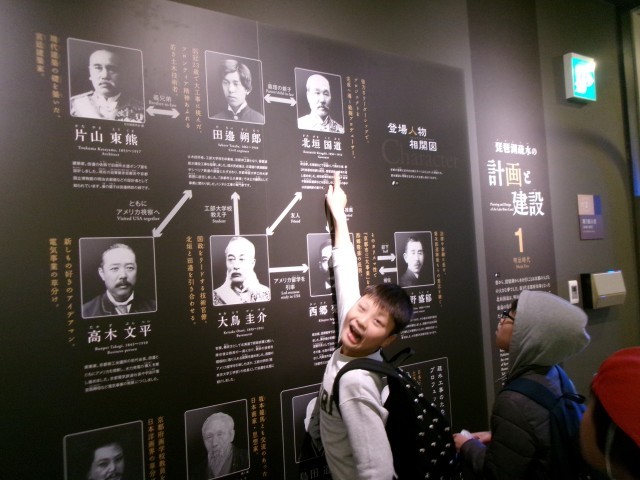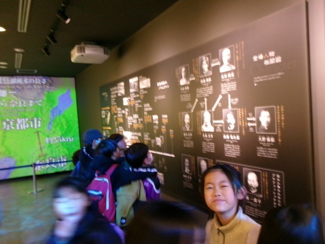 疎水記念館の中では「あ,これ~!」「見てみて!」と言いながら熱心に展示を見て回っていました。