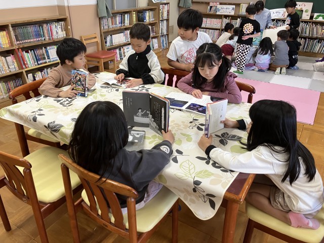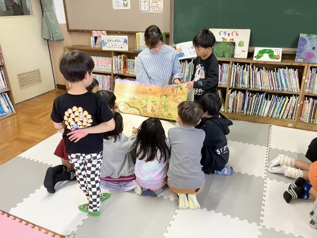 図書司書の永井先生に読み聞かせをしてもらったり、自分の好きな本を見つけて読んだりしました。