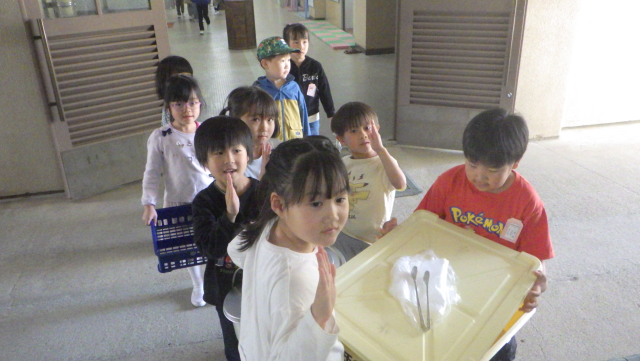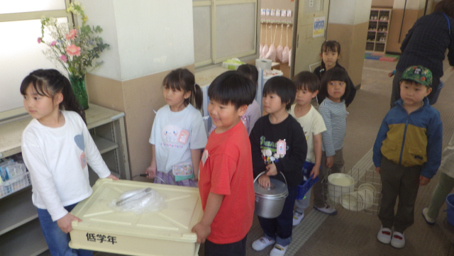 先週まで、大人の手で食器や食缶を運んでいましたが、今日からは子どもたちにバトンタッチ!