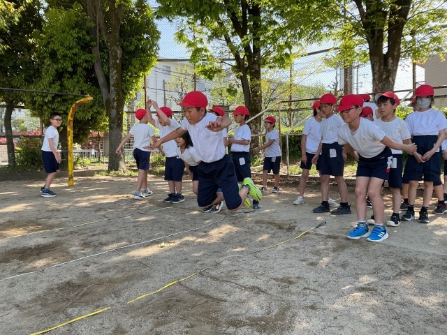 新体力テストに向けて立ち幅跳びの練習をしました。