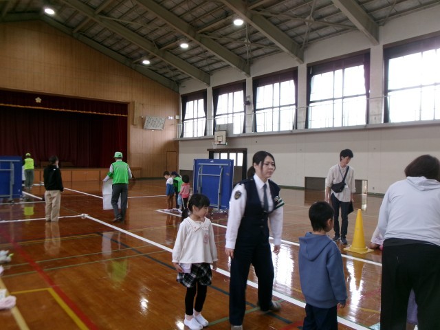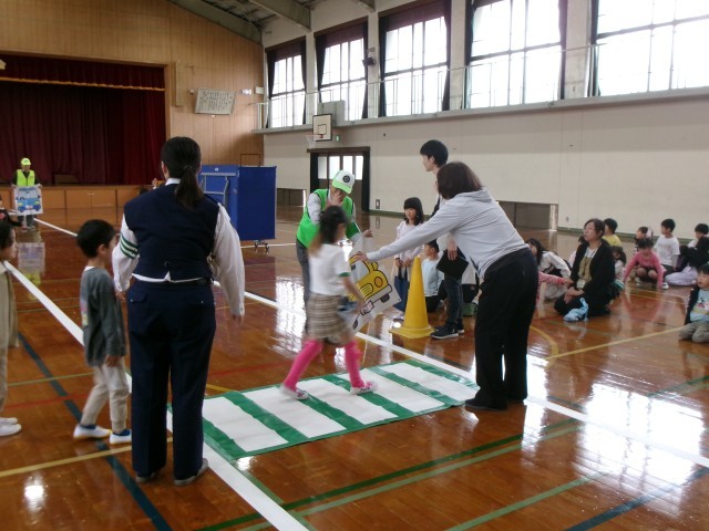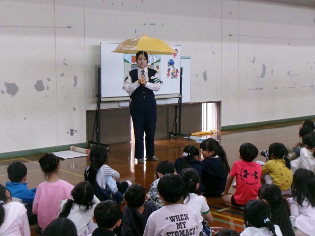 しっかり歩く小戸ができました。雨の日の傘の使い方も教えていただきました。沢山のボランティアの方々のご協力もあり、交通安全教室は無事に終了しました。