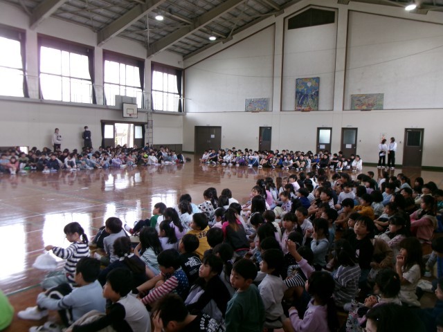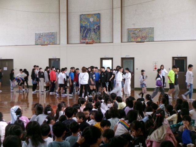 初めての児童集会、児童会本部のみんなで協力して運営してくれました。とても素敵な児童集会でした。教室に帰るときも6年生がお手本を示してくれました。