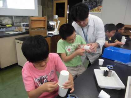 科学センター学習 公開日 2017/06/07 更新日 2017/06/07 コスモス バスに乗って,科学センター学習に行ってきました。4年生〜6年生は「声でくるくるまわしちゃお!」を作り,1・3年生は様々な展示を見たり触れたりしながら学習しました。イモリやザリガニなど小さな生き物に触れられるコーナーや工夫された大型おもちゃなどがあり,子どもたちの歓声があがっていました。 プラネタリウム学習では,自分の誕生星座を見つけることができました。