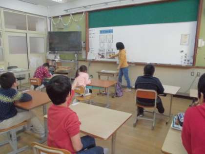 「スナック菓子は,すぐ口の中で溶けた」,スルメをたくさん噛んで「スルメってこんな味がするんだ」などと話していました。噛む回数が少ないと,肥満になりやすかったり,はっきりと話すことが難しかったりすることを学びました。給食では,一口30回噛んで食べることを目標にしています。