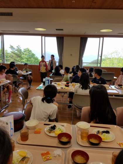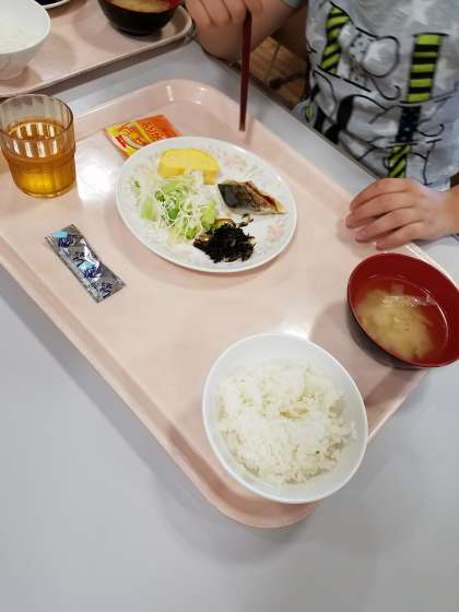 ご飯とお味噌汁とお茶はおかわりできます。今日の活動に備えてしっかり食べています。