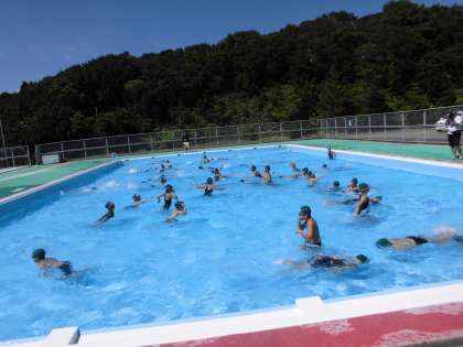 磯観察からみさきの家に戻ってくると,履いていった靴を洗って,みさきの家プールへ。ほてった体を冷やしました。