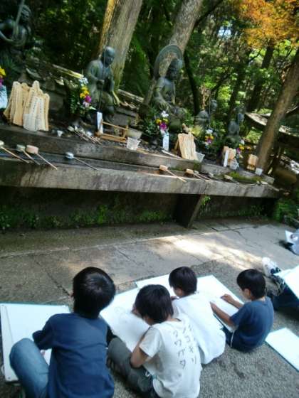 醍醐寺にある水掛不動尊の写生をしました。お天気にもめぐまれ、爽やかな気候のなか