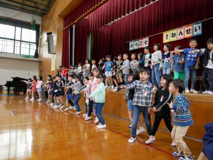 1年 1年生を迎える会 公開日 2019/05/09 更新日 2019/05/09 1年生 今日は1年生を迎える会がありました。 2年生から6年生までのお兄さん・お姉さんたちから素敵な出し物のプレゼントをもらいました。1年生からもお返しにダンスと言葉と歌を発表しました。とても可愛らしく,練習の成果が出ていました。 これからも醍醐小学校の一員として毎日を楽しんで過ごしてほしいと思います。