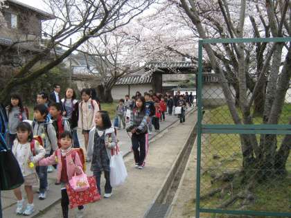 班長,副班長をリーダーとして集団登校がはじまっています。