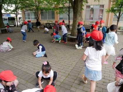 1年生の教室は6年生が掃除をしてくれているので,中庭に落ちている小枝や葉っぱを楽しそうに拾い集めています。自分たちや,みんなが使う中庭をきれいにできて,とても気持ちがよさそうです。
