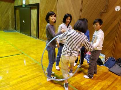 5年 長期宿泊学習 1日目〜イニシアチブゲーム〜 公開日 2019/05/15 更新日 2019/05/15 5年生 昨晩は雨が降り続いていましたので,予定していたナイトウォークはできませんでした。 その代わり,体育館でイニシアチブゲームをしました。 みんなで雨雲を吹き飛ばすぐらい元気なパワーで盛り上がりました。