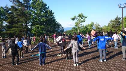 5年 長期宿泊学習 2日目〜朝のつどい〜 公開日 2019/05/15 更新日 2019/05/15 5年生 朝の集いをしました。 とても気持ちの良い天気で2日目を迎えることができました。向こうに見えるのは天文台です。今晩は星が見れそうです。 爽やかな景色の中で,ラジオ体操をして,歌を歌いました。