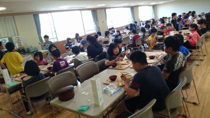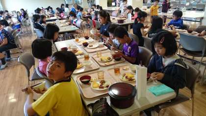 5年 長期宿泊学習 3日目〜朝食〜 公開日 2019/05/16 更新日 2019/05/16 5年生 3日目の朝ごはんです。今日は,チーズリゾットです。チーズリゾットは,子どもたちの感想によると,「めっちゃ美味しい。」そうです。 これから田植えなので,お腹いっぱいいただきました。